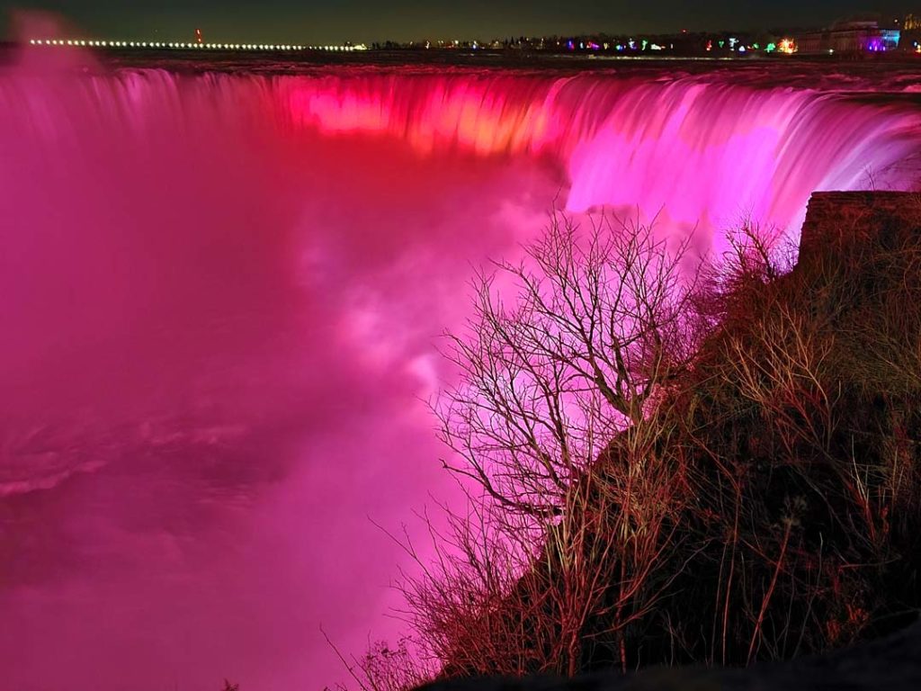 Snow, ice and spray from the falls turn nearby lamp posts, trees and even buildings into magnificent works of art. The mighty falls themselves, illuminated by powerful coloured lights, provide an unforgettable backdrop for the annual magical celebration transforming the changing beauty of Niagara Falls into a magical winter wonderland illuminated by millions of sparkling lights arranged in hundreds of beautiful light and animated motion displays.